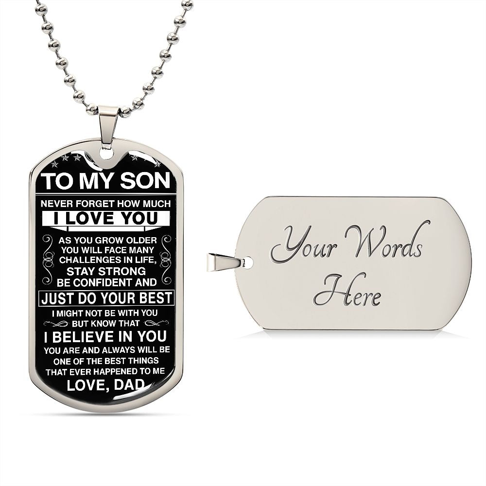 To My Son - Never Forget How Much I love You - Dog Tag - Military Ball Chain